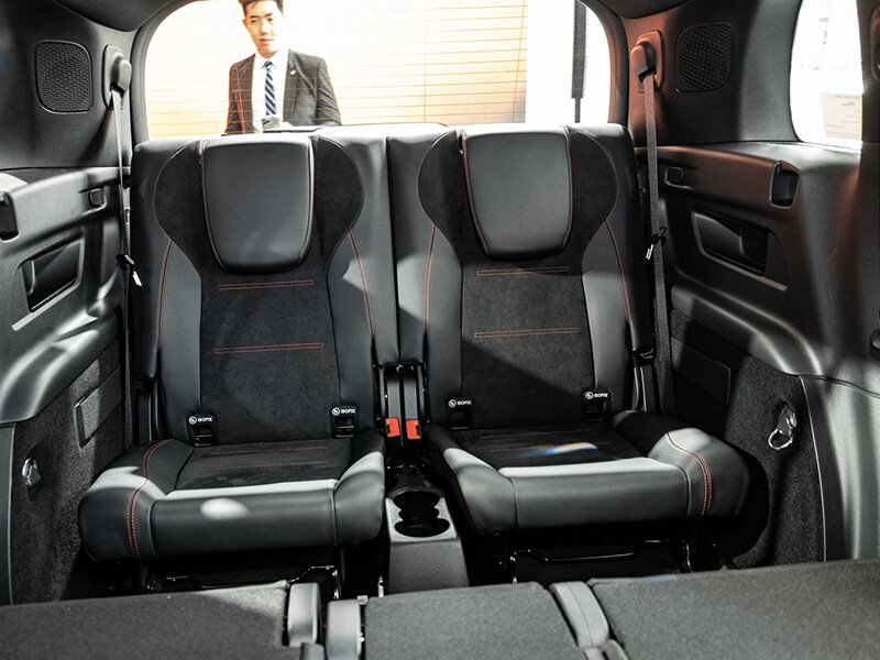 Hàng ghế thứ 2 được trang bị bệ tỳ tay và cửa gió điều hòa riêng biệt. Hàng ghế thứ 2 có thể gập gọn theo tỷ lệ 40:20:40 giúp tăng không gian để hành lý khi cần thiết. Hàng ghế thứ 3 được thiết kế với 2 ghế ngồi và hành khách cao 1.65 mm có thể ngồi vừa vặn; có thể gập theo tỷ lệ 50:50.